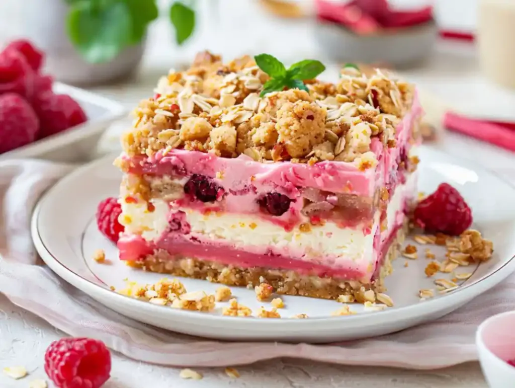 🍓 Easy Rhubarb Crumble Cheesecake Bars