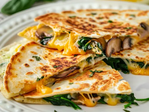 Easy Cheesy Spinach and Mushroom Quesadillas
