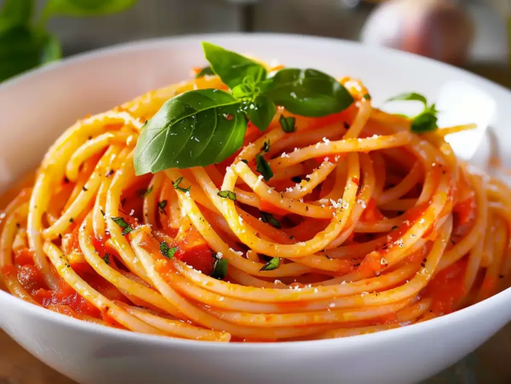 This recipe is proof that simple ingredients can create incredible flavor. The combination of fresh garlic sautéed in olive oil and juicy tomatoes simmered with cream creates a smooth, rich sauce that clings beautifully to spaghetti or fettuccine.