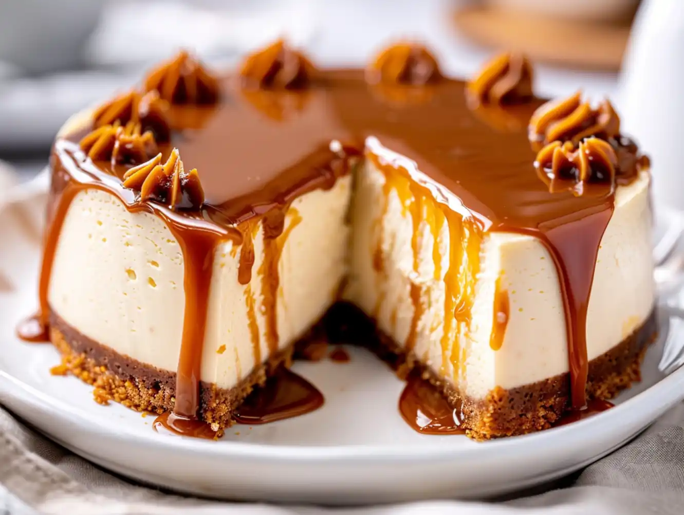 A smooth, creamy cheesecake infused with sweet dulce de leche for a rich caramel flavor and a decadent, melt-in-your-mouth texture. Perfect for special occasions or indulgent dessert lovers.
