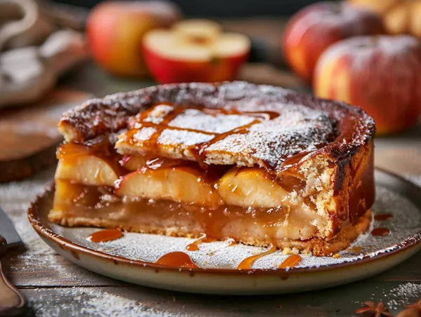 Pour the apple filling over the cake base and spread evenly. Bake for 40–45 minutes, or until the edges are set and the center is still slightly jiggly.