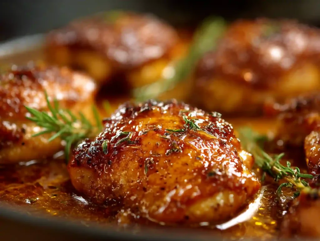 6. Bake uncovered for 35–40 minutes, until chicken reaches 165°F (74°C) internally and the skin is golden.