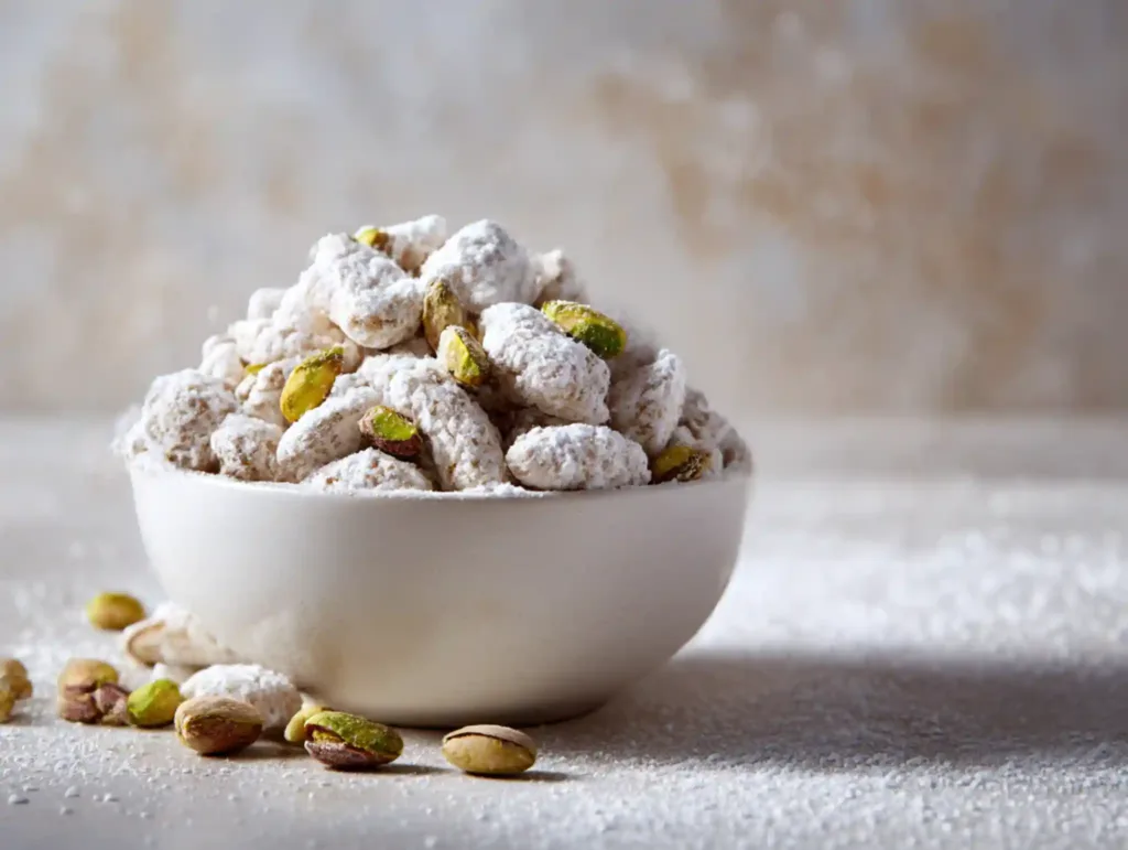 This recipe checks all the boxes for a go-to treat. It’s fast, family-friendly, and doesn’t require turning on the oven. The pistachio flavor adds a light nutty sweetness that feels special without being overwhelming, while the powdered sugar coating gives it that familiar puppy chow crunch everyone loves.