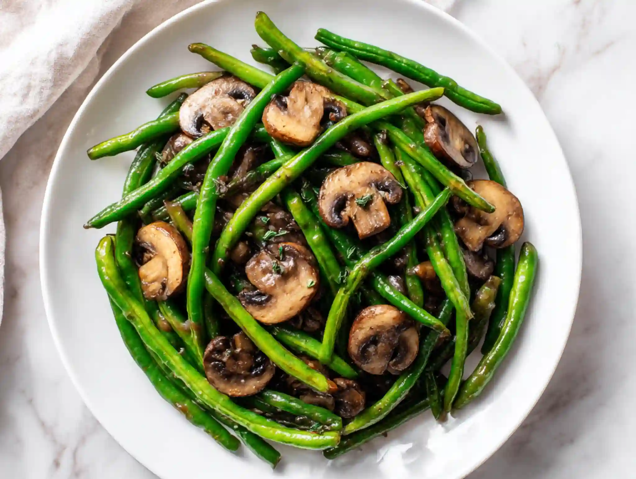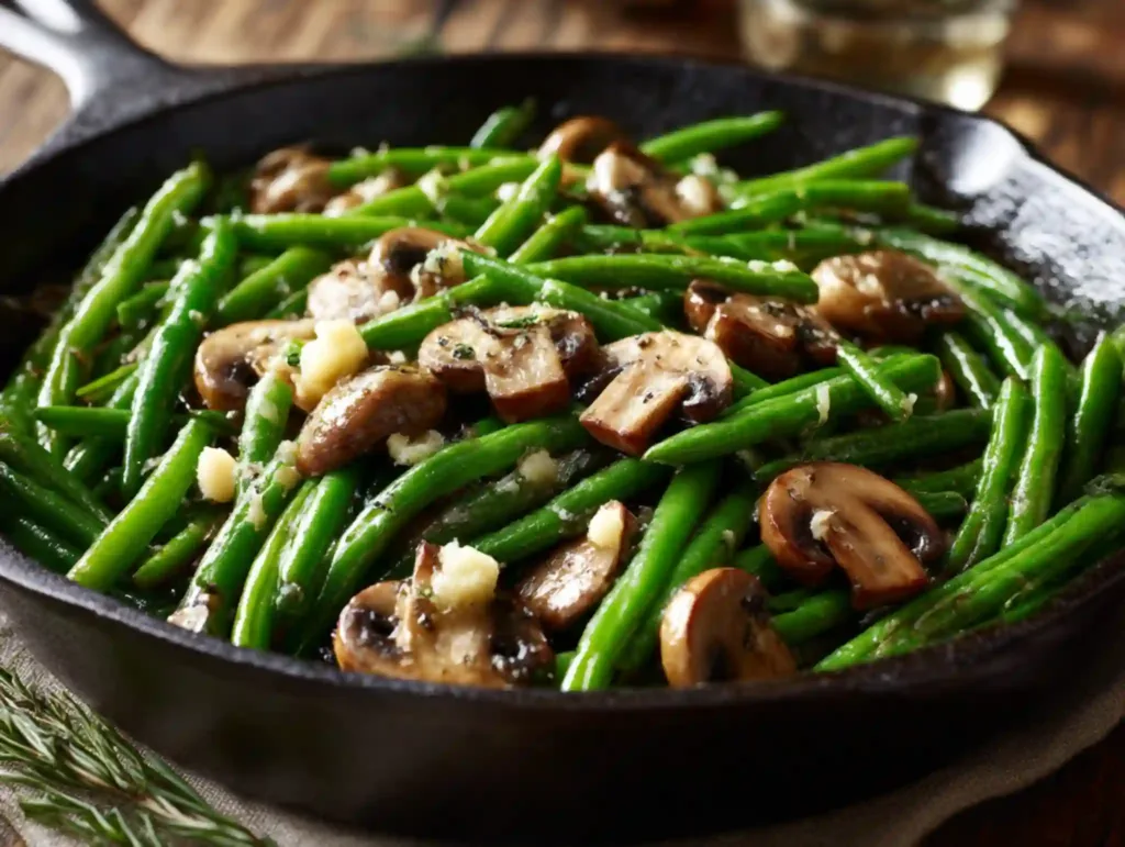 A quick, vibrant side dish featuring crisp-tender green beans and savory mushrooms sautéed in rich garlic butter. Perfect for weeknight dinners, holidays, or meal prep—made in one skillet with simple ingredients and big flavor.