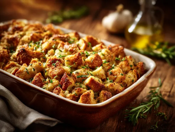 Looking for a quick dinner idea that feels cozy, classic, and incredibly satisfying? This crispy herb stuffing is the perfect answer. Made with day-old bread, fresh herbs, and plenty of buttery flavor, it delivers golden crunch on top with a tender, savory center. Whether you’re cooking a quick lunch, an easy dinner for two, or a comforting side dish, this recipe comes together with minimal prep and big payoff.
