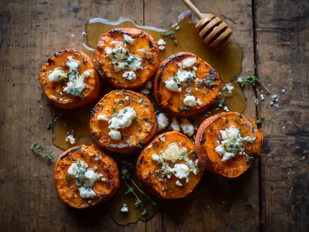 Easy Roasted Honey Feta Sweet Potato Rounds