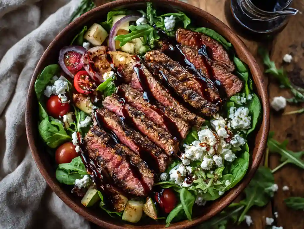 If you’re looking for a salad that truly satisfies, this Ultimate Grilled Balsamic Steak Salad delivers bold flavor, hearty texture, and a gourmet feel—right from your own kitchen. Juicy grilled flank steak, crisp vegetables, crunchy nuts, and creamy cheese come together with a rich balsamic glaze for a meal that’s perfect for lunch or dinner. This is the kind of salad that keeps you full, energized, and excited for the next bite.